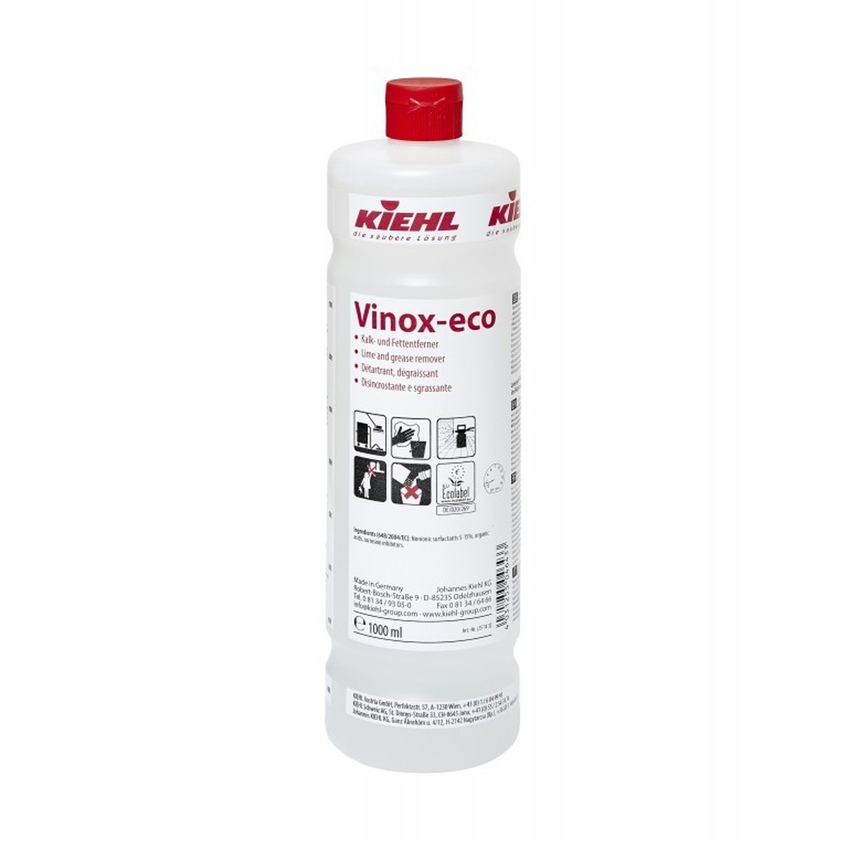 Kiehl Vinox-Eco to szybko działający, preparat czyszczący na bazie ekologicznych kwasów do usuwania wapnia i tłuszczu. Przyjazne dla środowiska naturalnego składniki umożliwiają intensywne rozpuszczanie wapnia i znakomite emulgowanie zbrudzeń olejowych i tłuszczowych. Stosowanie produktu na powierzchniach wrażliwych na kwasy może doprowadzić do powstania nieodwracalnych uszkodzeń materiału!