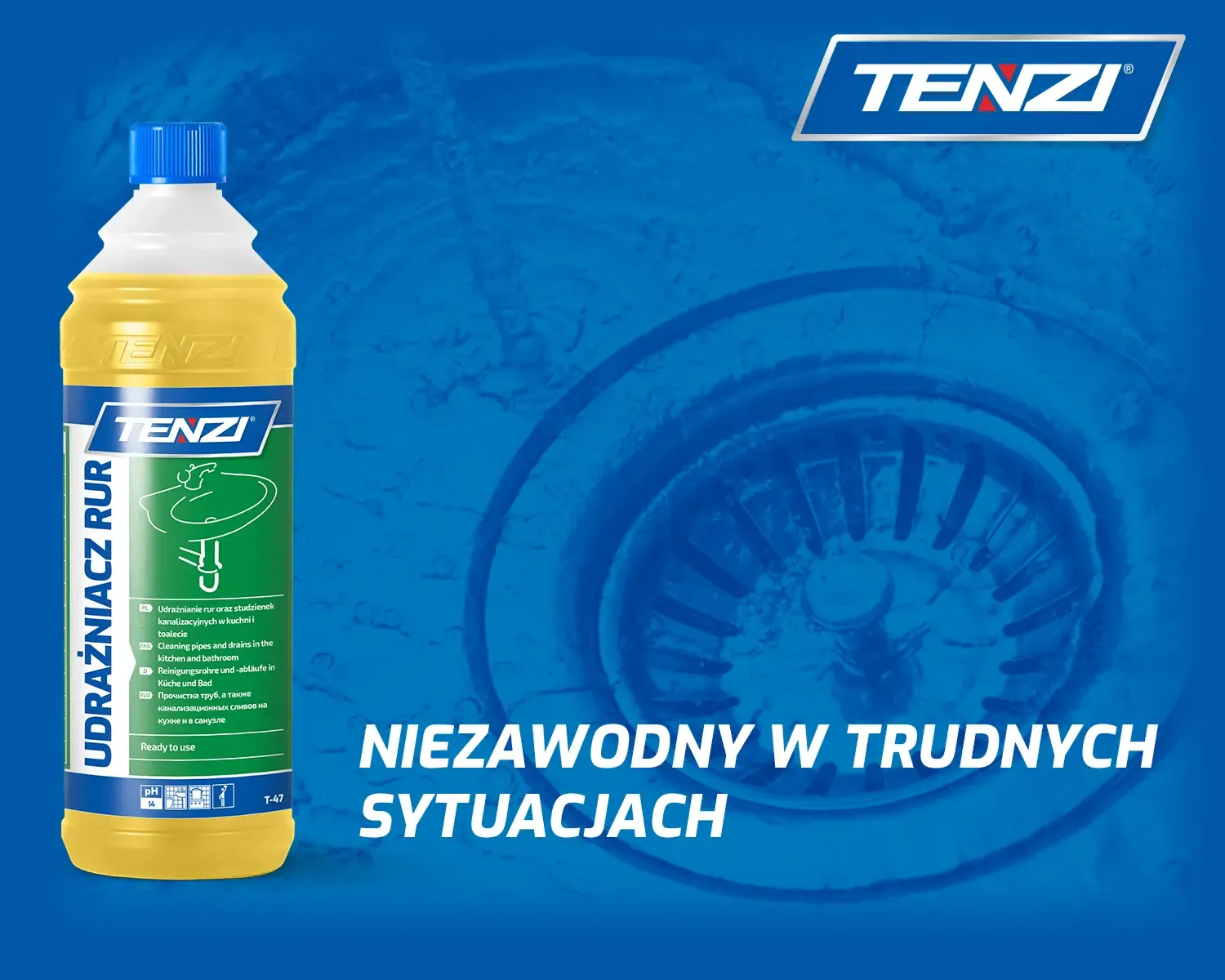 Tenzi Udrażniacz Rur to preparat do udrażniania rur. Doskonale penetruje odpływy zlewozmywaków, rur oraz studzienek kanalizacyjnych w kuchni i toalecie. Rozpuszcza zanieczyszczenia organiczne. Nie powoduje skutków ubocznych na czyszczonych powierzchniach. Nie wzmaga procesów gnilnych w czasie działania.