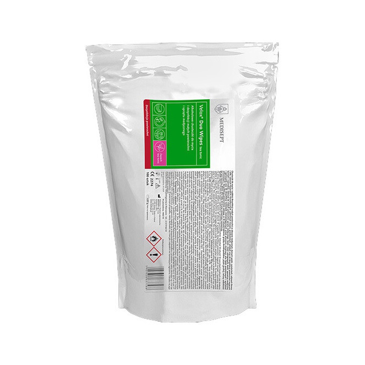 Velox Duo Wipes to alkoholowe chusteczki do dezynfekcji niewielkich powierzchni i sprzętu medycznego. Posiadają one właściwości oczyszczające, odświeżające i biobójcze. Dzięki nim, skutecznie pozbędziesz się bakterii, prątek gruźlicy, wirusów osłonkowych, a także wirusa BVDV, Rota czy Noro. W przypadku grzybów działają niemal natychmiast, bo już w 15 sekund. Chusteczki Medisept to gwarancja skuteczności potwierdzona licznymi badaniami. Wszystko po to, aby jak najlepiej zredukować ryzyko przenoszenia drobnoustrojów lub zarażenia się nimi.