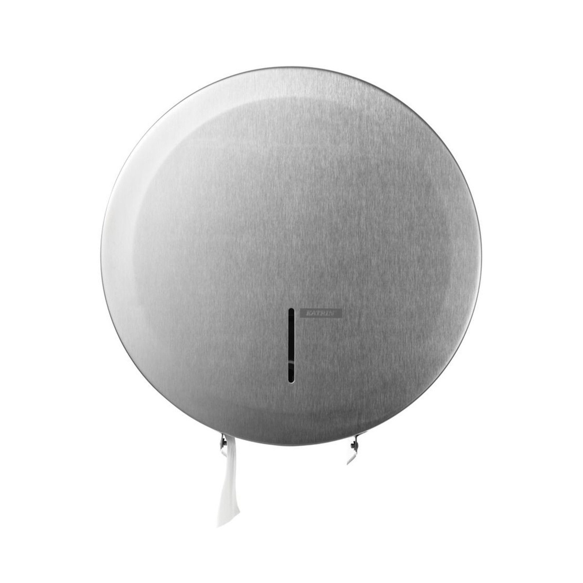 KATRIN Stainless steel Gigant L Dispenser to dozownik na papier toaletowy w dużej roli o rozmiarze typu LARGE o maksymalnej szerokości 32 cm 992967. Idealnie nadaje się do do miejsc o wysokiej częstotliwości użytkowania. Posiada okienko ułatwia kontrole ilości papieru w dozowniku. Prosty zarówno w montażu jak i wymianie rolki. Zamykany. Wykonany ze stali szczotkowanej.