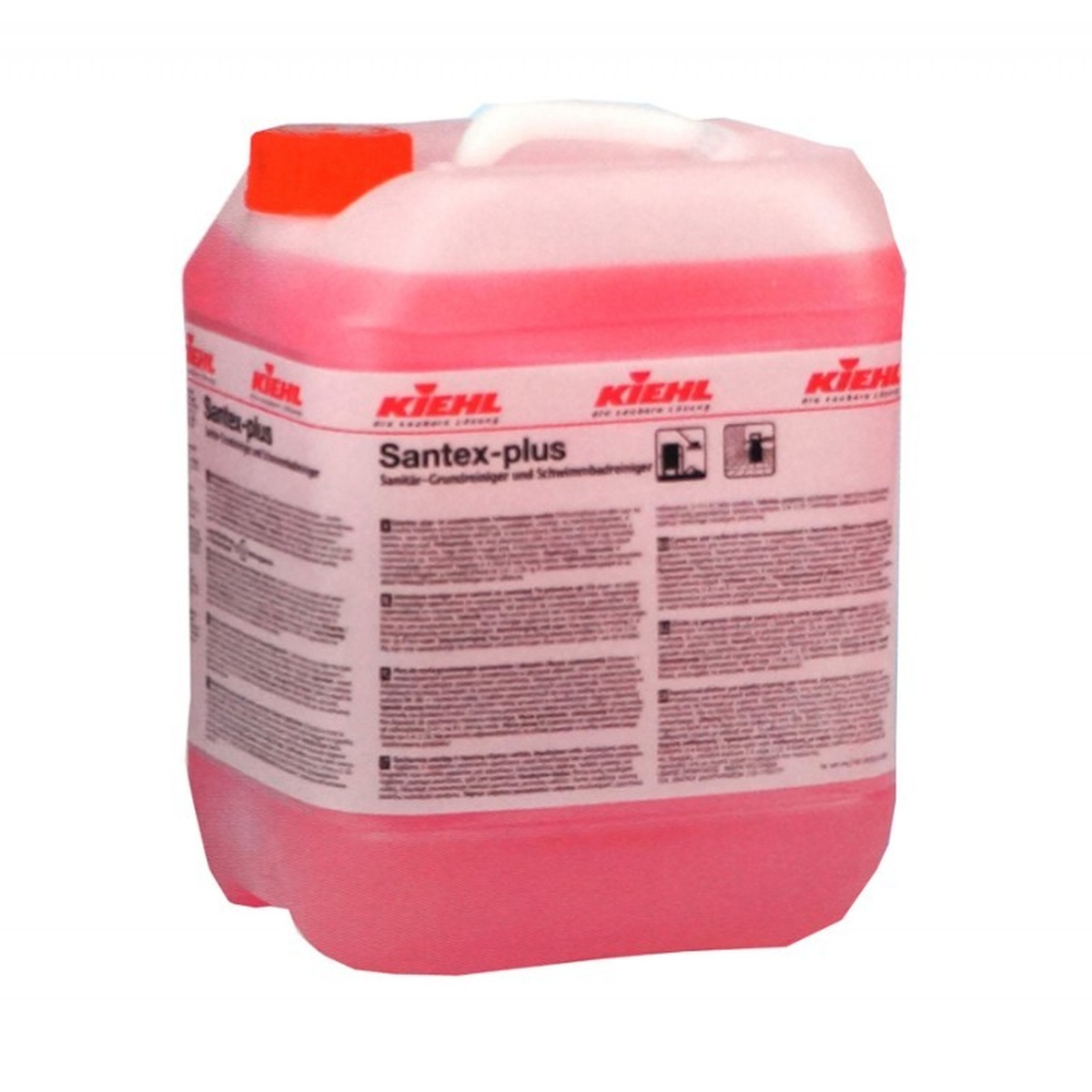 Kiehl Santex-Plus to świeżo pachnący płyn do gruntownego mycia sanitariatów na bazie kwasu do usuwania uporczywych pozostałości wapiennych, mydła wapiennego, kamienia moczowego, resztek cementu i rdzy ze wszystkich kwasoodpornych powierzchni. Stosowanie produktu na powierzchniach wrażliwych na kwasy prowadzi do powstania nieodwracalnych szkód materiału. Umieszczony w wykazie RK (RK= niemiecki wykaz środków zatwierdzonych do mycia podłóg ceramicznych).