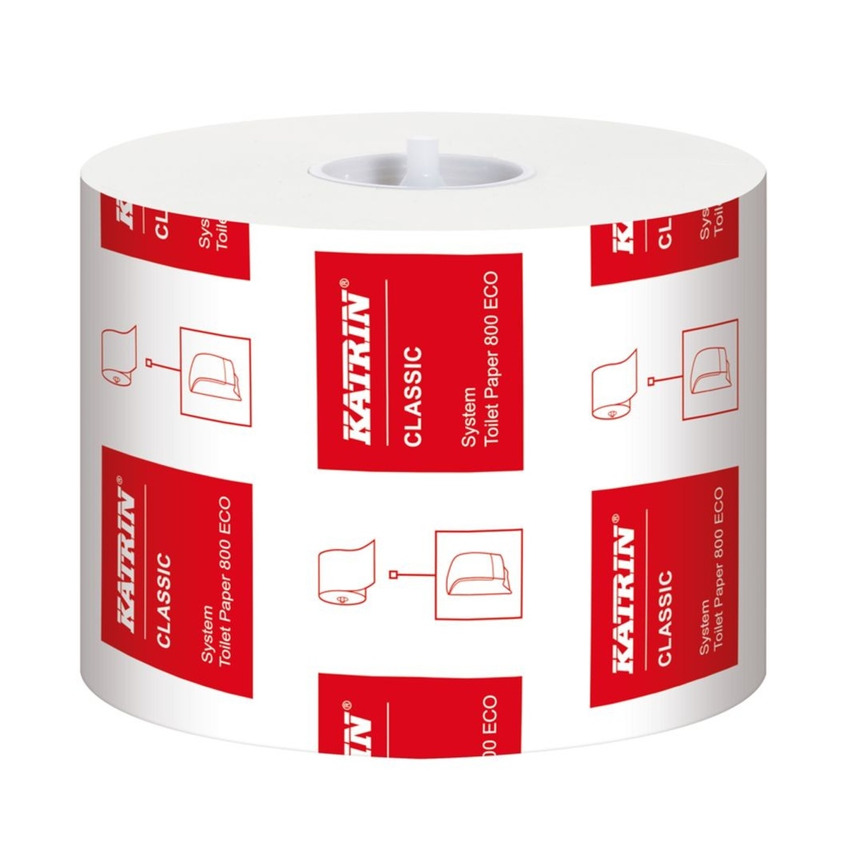 Katrin Classic System Toilet 800 ECO jest papierem toaletowym systemowym, który doskonale sprawdzi się w łazienkach o średnim natężeniu ruchu. Papier toaletowy został wykonany z dwuwarstwowych włókien makulatury pochodzących w 100% z recyklingu. Jest to miękki, wydajny oraz wytrzymały papier do zastosowania w dozownikach Katrin System Toilet, w którym mieszczą się 2 rolki.Kontrolowane dozowanie i samoprzylepne arkusze zmniejszają zużycie i poprawiają higienę Wszystkie papiery toaletowe Katrin wykonane są z wysokiej jakości włókien i przeszły test rozpuszczania 90 sekund metodą Metsä Tissue 02 Certyfikaty Nordic Swan Eco Label i EU