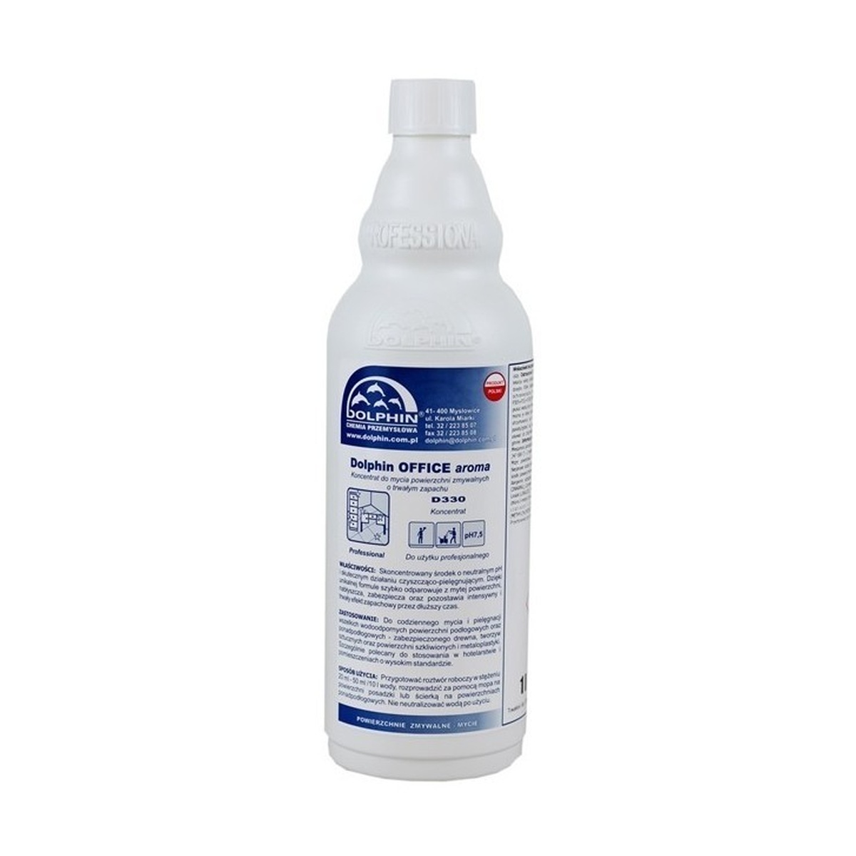 DOLPHIN OFFICE AROMA jest niskopieniącym, wysoko wydajnym środkiem myjąco-czyszczącym. Charakteryzuje się bardzo przyjemnym, delikatnym zapachem. Zalecany do czyszczenia powierzchni wodoodpornych wykonanych z kamienia naturalnego i sztucznego. pH praparatu jest neutralne, a jego działanie myjąco-czyszczące skuteczne. Szybko odparowuje z powierzchni mytej, działa nabłyszczająco oraz zabezpieczająco.