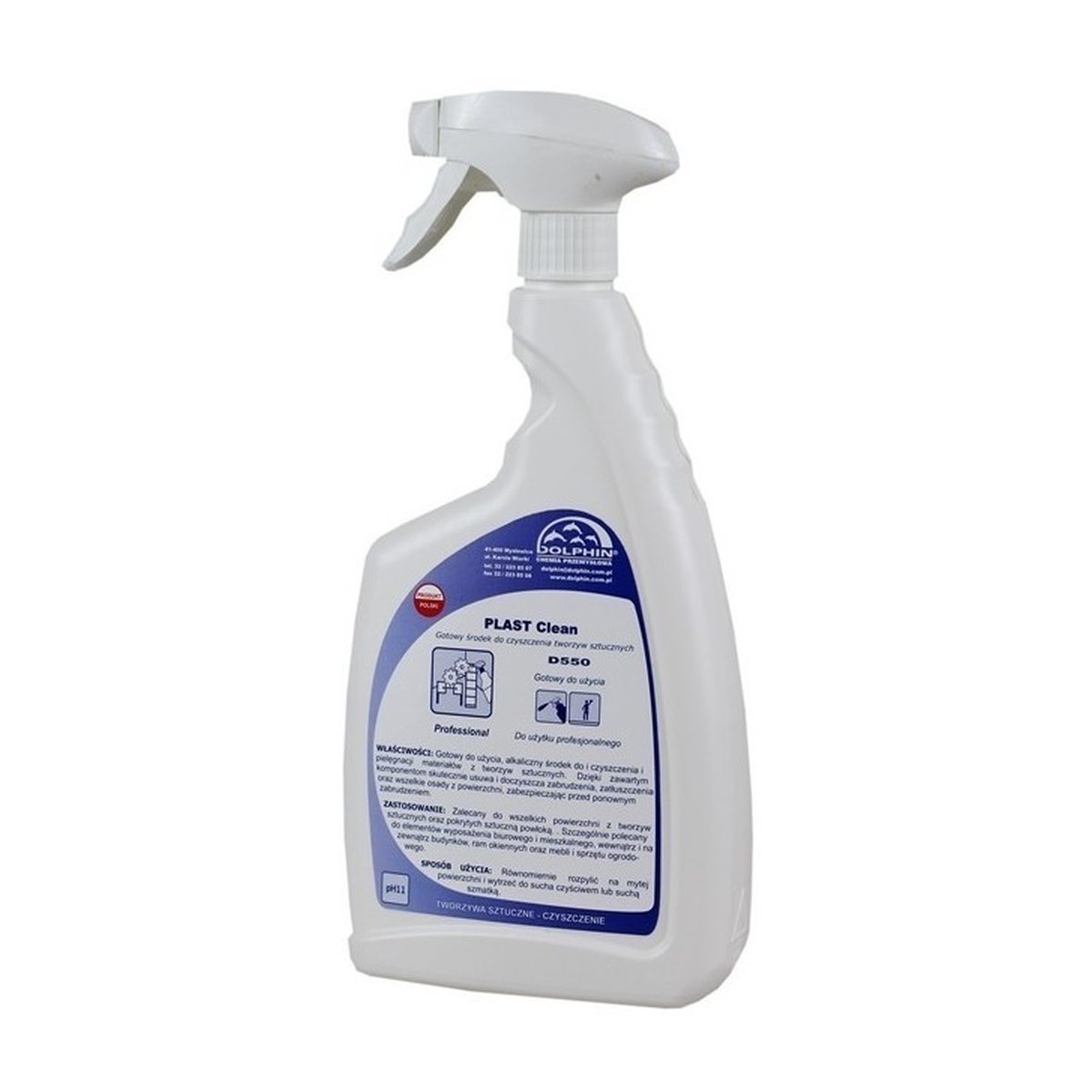 Dolphin Plast Clean jest gotowym do użycia, alkalicznym środkiem do i czyszczenia i pielęgnacji materiałów z tworzyw sztucznych. Zalecany do wszelkich powierzchni z tworzyw sztucznych oraz pokrytych sztuczną powłoką, wewnątrz i na zewnątrz budynków. Szczególnie polecany do elementów wyposażenia biurowego i mieszkalnego, ram okiennych oraz mebli i sprzętu ogrodowego. Dzięki zawartym komponentom skutecznie usuwa i doczyszcza zabrudzenia, zatłuszczenia oraz wszelkie osady z powierzchni, zabezpieczając przed ponownym zabrudzeniem.