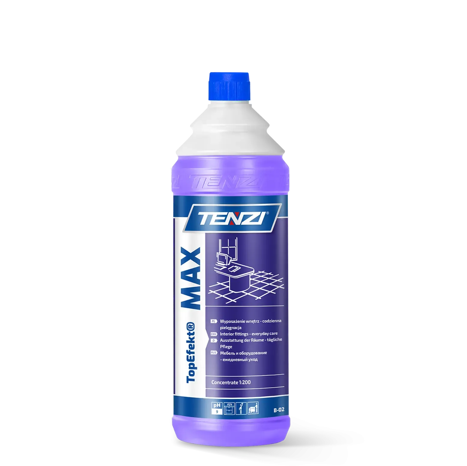 Tenzi TopEfekt MAX to produkt przeznaczony do powierzchni biurowych o przyjemnym zapachu, który z łatwością radzi sobie z bieżącymi zabrudzeniami pochodzenia tłuszczowego. Produkt nie pozostawia smug i refleksów świetlnych. TopEfekt MAX odświeża i pozostawia przyjemny zapach, tworzy delikatną, błyszczącą powłokę ochronną.