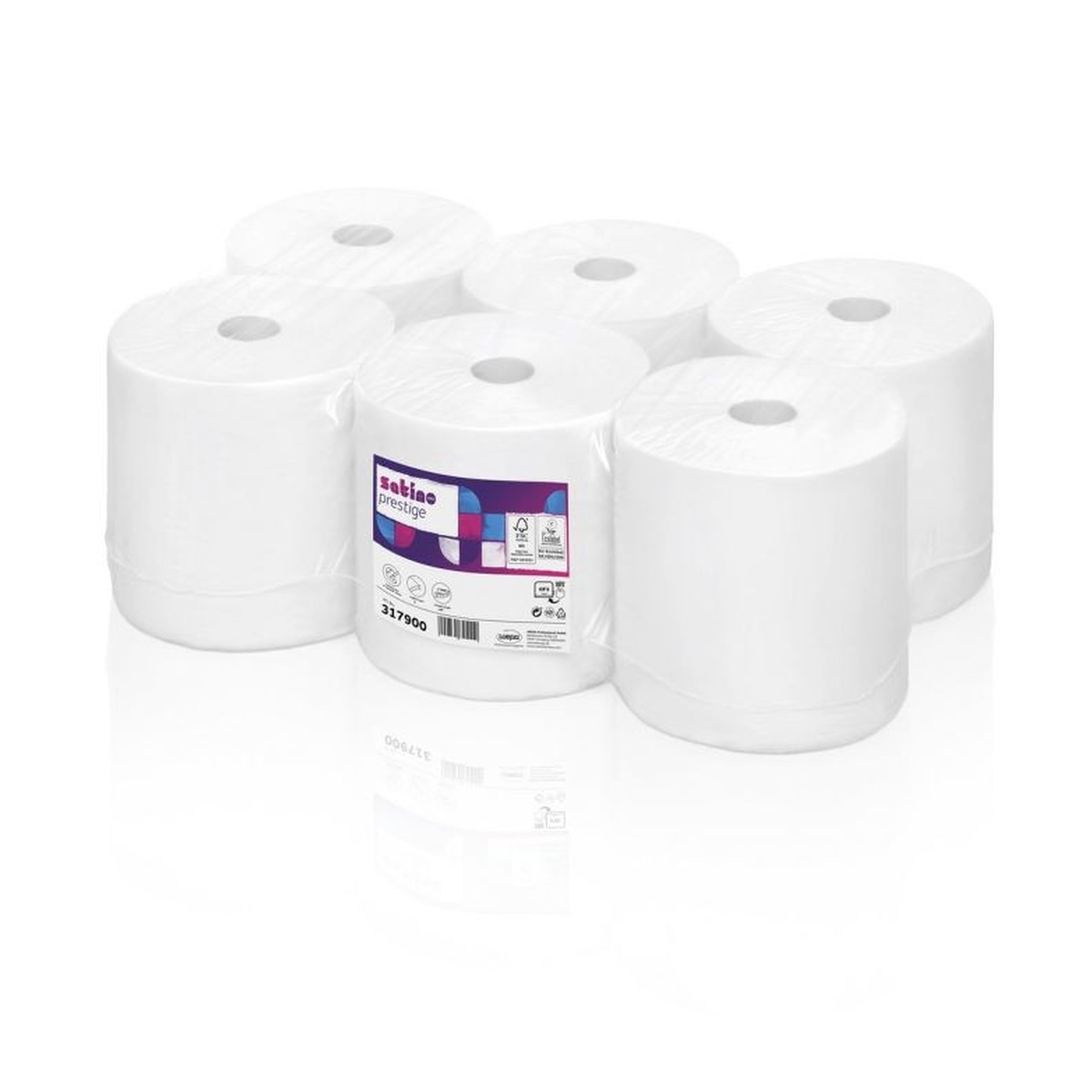 SATINO prestige CF 150m 2p FC to śnieżnobiałe ręczniki składane z 100% celulozy, wyróżnia go jakość premium o najwyższym standardzie chłonności i paramtetrów czyszczących.