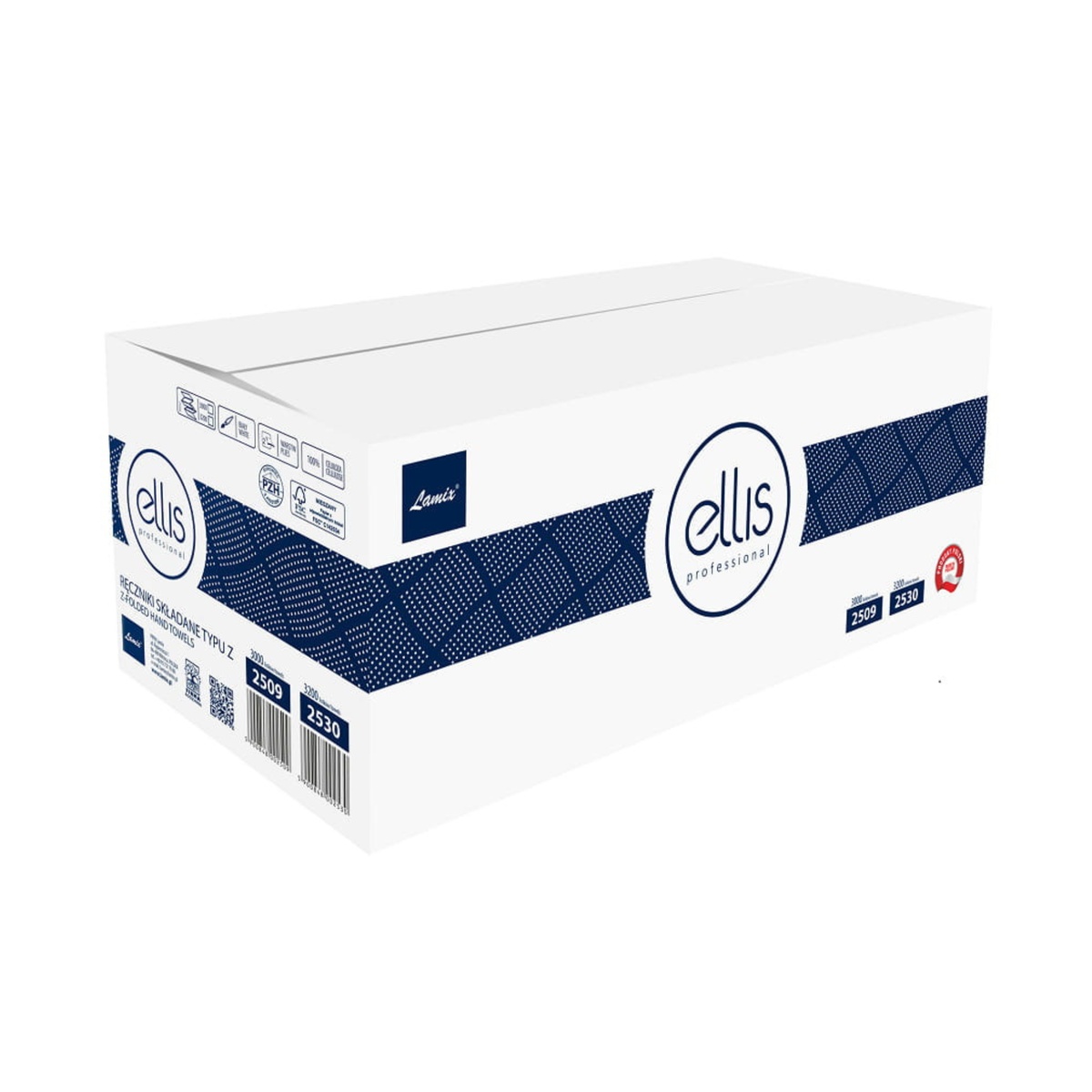 Celulozowy, dwuwarstwowy i klejony ręcznik składany wielopanelowy do użytku profesjonalnego w pomieszczeniach o zwiększonym natężeniu użytkowania. Ręcznik składany typu Z (trzypanelowy)